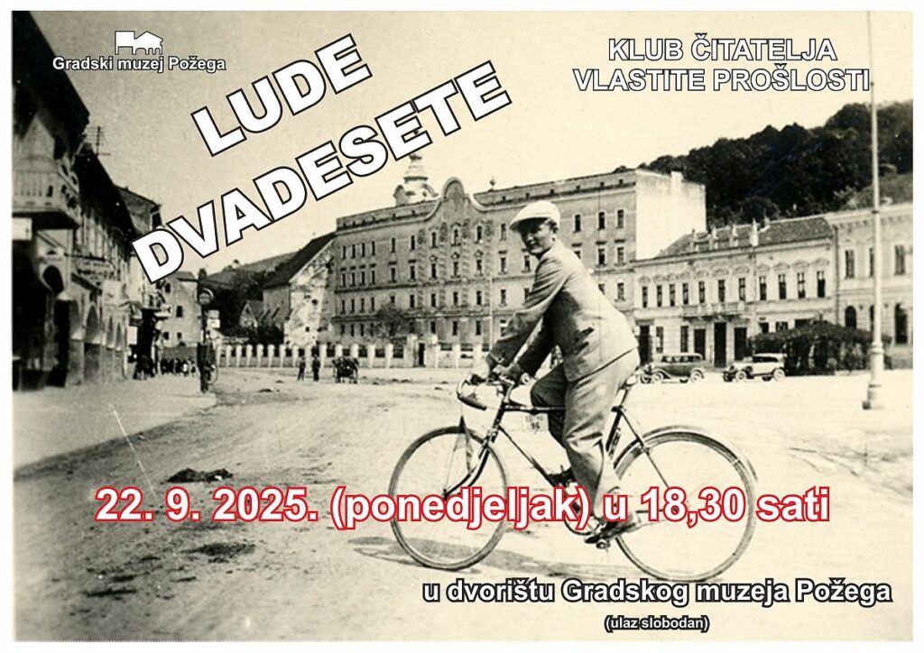 Kroz bogatstvo građe iz požeških novina, fotografija i arhiva sugrađana, susret Kluba čitatelja vlastite prošlosti prikazat će kako su se globalni trendovi „ludih dvadesetih“ prelili u svakodnevicu Požežana – od mode i plesa, preko industrije i sporta, do novih društvenih vrijednosti i navika.