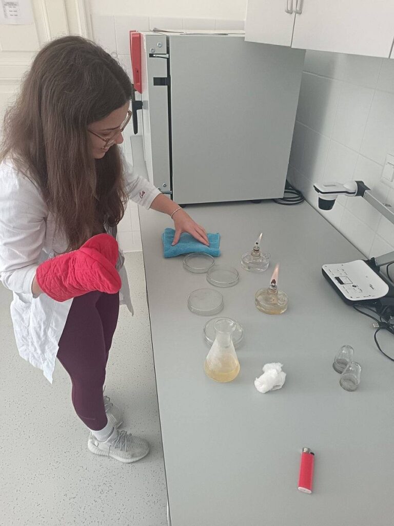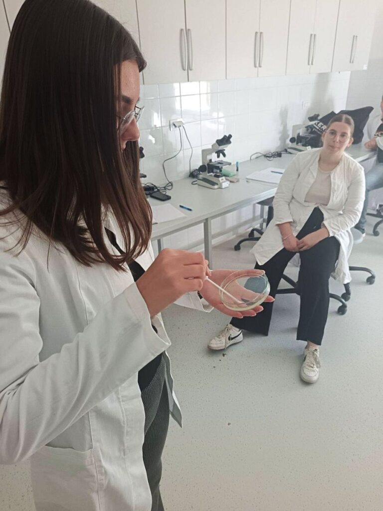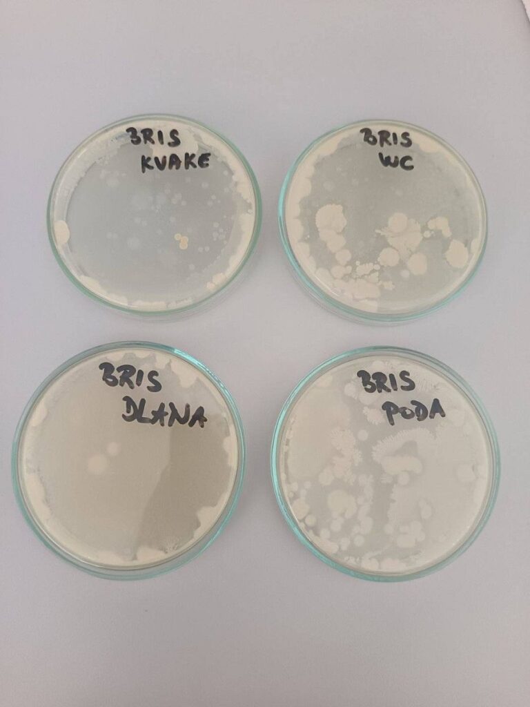 Učenici su također pripremali hranljivu podlogu od agara i uzgajali mikroorganizme s brisa usne šupljine, poda i dlana. Nakon inkubacije analizirali su kolonije i uspoređivali njihovu brojnost, približavajući se fascinantnom svijetu mikrobiologije.