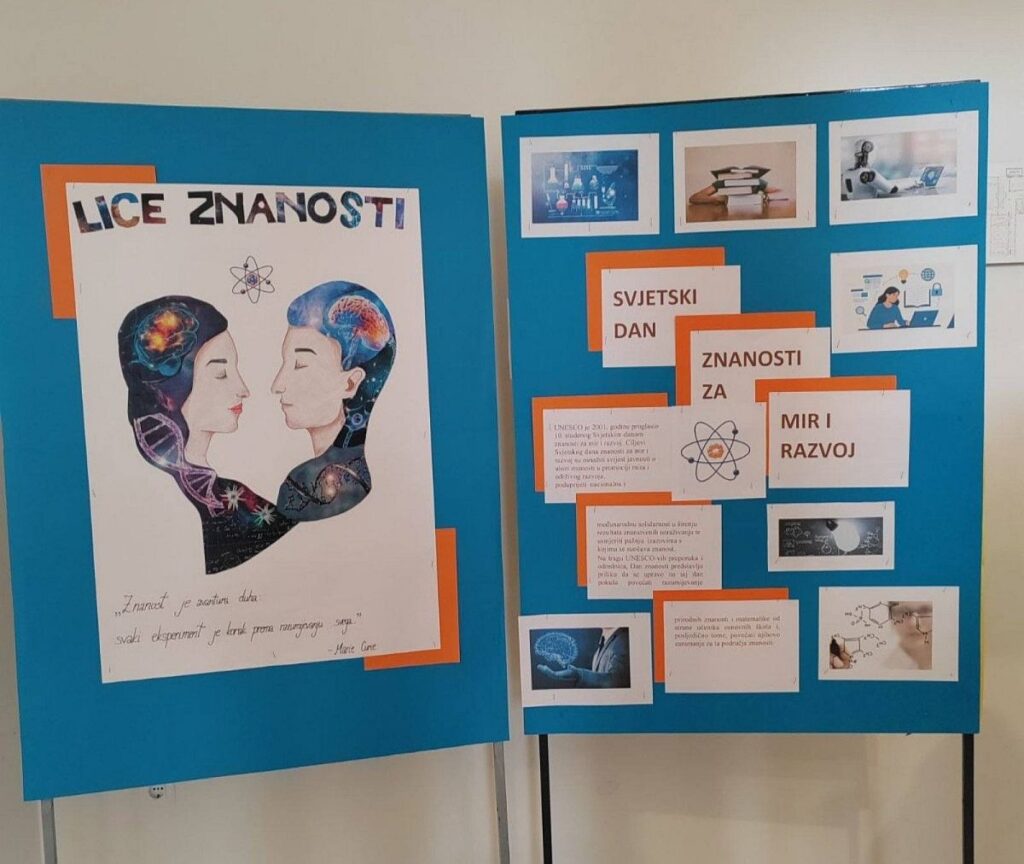 Kako bi obilježavanje Svjetskog dana znanosti za mir i razvoj bilo vidljivo svima, profesorica Ivona Bećirivić izradila je plakat „Lice znanosti“ kombinirajući crtanje i kolaž tehniku, dok je profesorica Anita Bubak s učenicima pripremila pano posvećen ovom danu. Oba rada izložena su u školskom holu, potičući kreativnost i promišljanje učenika.