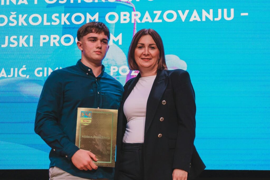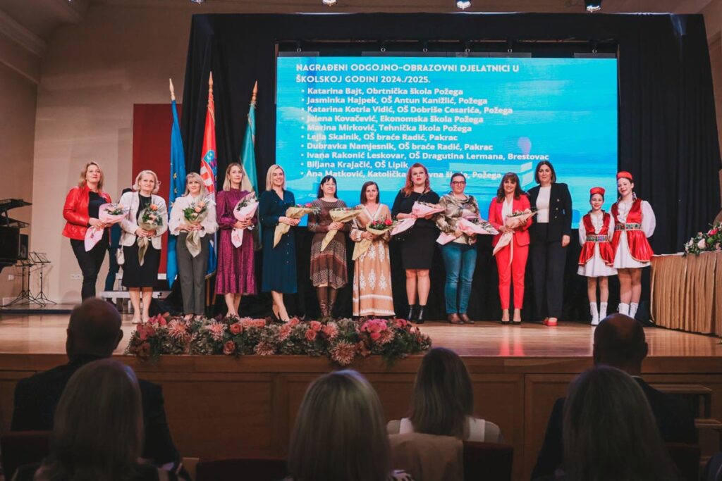 Županijska nagrada za izvrsnost u kategoriji osnovnoškolskog obrazovanja dodijeljena je Jani Paić, učenici osmog razreda Osnovne škole Antuna Kanižlića, u kategoriji srednjoškolskog obrazovanja – gimnazijski program, Stjepanu Bajiću, učeniku trećeg razreda Gimnazije Požega, te u kategoriji srednjoškolskog obrazovanja – strukovni program, Ivi Radoš, učenici trećeg razreda Obrtničke škole. Za izniman doprinos u odgojno-obrazovnom procesu nagrađena je Sanja Grbeš, profesorica kemije i biologije u Osnovnoj školi fra Kaje Adžića Pleternica.