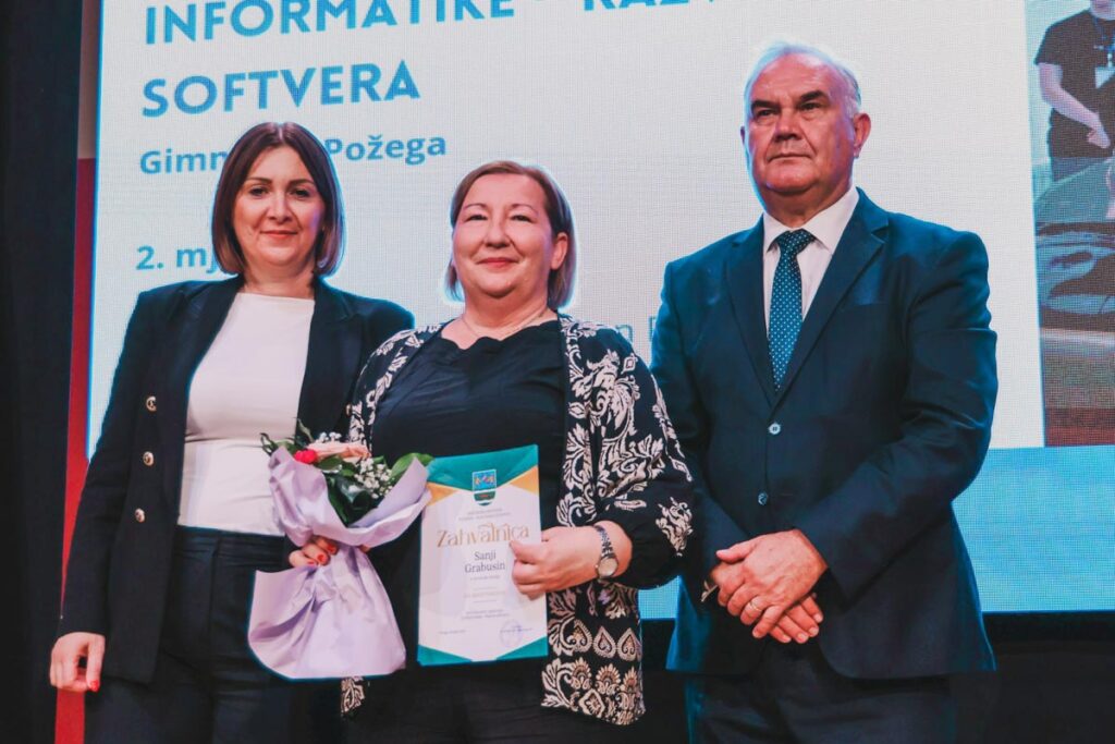 Na državnom natjecanju iz informatike u kategoriji razvoj softvera 2. mjesto osvojili su učenici Gimnazije Požega, Fran Galović, Damjan Pavličević te Josip Razumović pod vodstvom mentorice Sanje Grabusin.