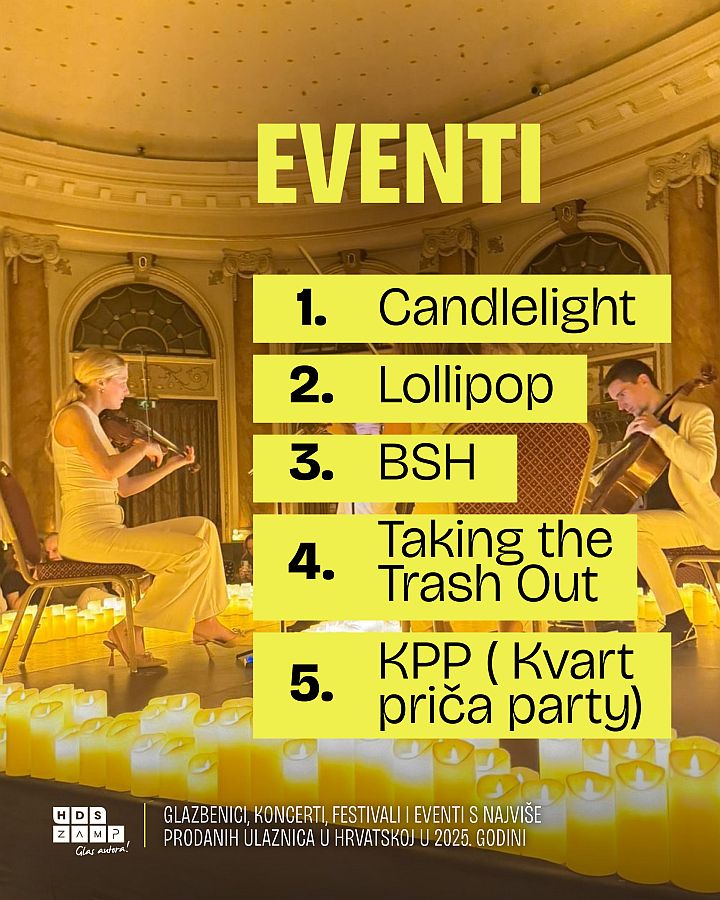 Kategorija koju smo uveli prošle godine prepoznavši sve veći broj organizatora, ali i publike, je ona za event godine, odnosno glazbena događanja koja su se pod istim imenom događala višekratno kroz godinu, s najboljim komercijalnim rezultatima. Franšiza Candlelight 2025. je stigla u Hrvatsku, a koncerti uz svijeće izgledno su oborili domaću publiku jer je Candlelight na drugo mjesto potisnuo popularne Lollipop partije.