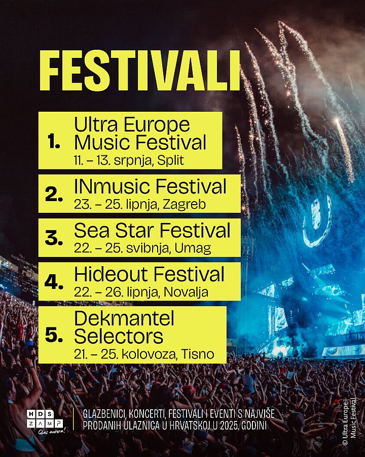 Titulu najuspješnijeg festivala u Hrvatskoj četvrti put odnosi Ultra Music Festival, koji je prošle godine doživio svoju 11. inačicu, a drugu godinu zaredom slijedi ga zagrebački INmusic festival koji za 2026. priprema svoje punoljetno izdanje.