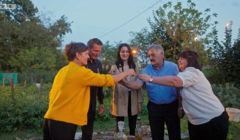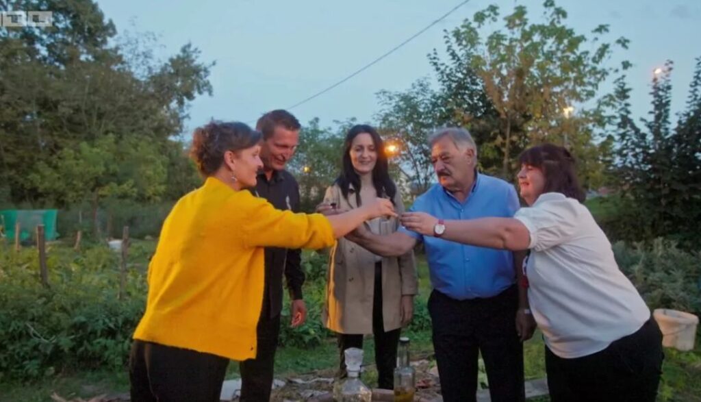 Dok su čekali glavno jelo domaćica je zadala gostima zadatak da bosi prošeću po dvorištu kako bi se povezali sa zemljom, a za to vrijeme Emilija je dovršavala bijeli umak sa sirom.