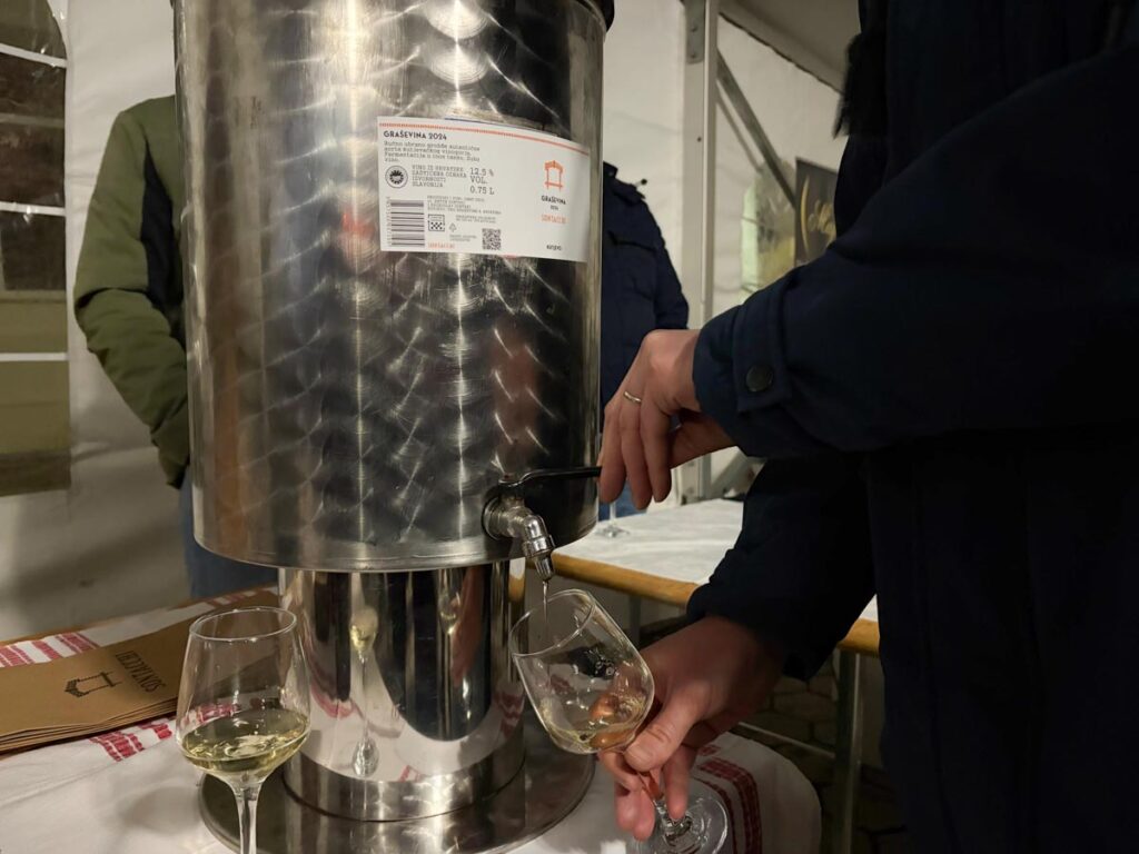 Kutjevački vinari bili su smješteni unutar šatora, gdje su posjetitelji imali priliku degustirati mlada vina berbe 2025., kao i ostala vina iz njihove ponude. Svaki vinar donio je vlastitu bačvu s mladim vinom, a dio vina mogao se kupiti i na licu mjesta.