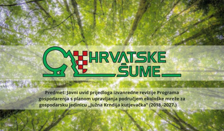 Uprava šuma Podružnica Požega obavještava sve zainteresirane strane da je izrađen prijedlog Izvanredne revizije Programa gospodarenja s planom upravljanja područjem ekološke mreže za gospodarsku jedinicu „Južna Krndija kutjevačka“ kojom gospodari Šumarija Kutjevo.