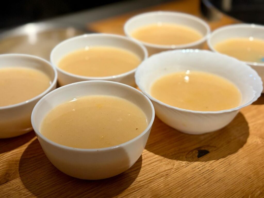 Drugo predstavljeno jelo bila je mađarska kisela čorba od rasola i češnjaka, tradicionalna okrjepa koju se kroz povijesne izvore može pratiti kao „horvatsku jesvinu“ – od zapisa iz 17. stoljeća, vremena Zrinskih i Frankopana, pa sve do Korajčevih Ouvergnatskih senatora, gdje je bila poznata kao najbolji lijek protiv mamurluka. Dok su se bijeli i crveni bošpor u slatinsko-virovitičkom kraju razvili u težačko, siromaško jelo, u požeškom purgerskom vinogradarskom kraju Paprena kiselica na rasolu stoljećima se njegovala kao jelo za triježnjenje gostiju.