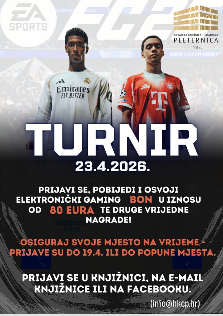U poslijepodnevnim satima, točnije u 16 sati, na rasporedu je „Turnir u e-sportu: FC 26“, namijenjen svima starijima od 10 godina. Organizatori pozivaju sve zainteresirane da se pridruže natjecanju i okušaju u virtualnom nogometu uz mogućnost osvajanja vrijednih nagrada.