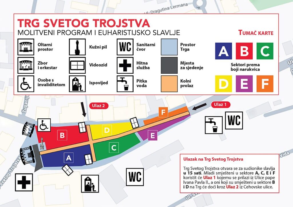 Trg Svetoga Trojstva bit će zatvoren za sav promet (vozila u kretanju i mirovanju) u razdoblju od 29. travnja do 3. svibnja 2026. (uključujući navedene datume). Zatvaranje je nužno zbog postavljanja i uklanjanja pozornica, video zidova, opreme razglasa, zaštitnih ograda te podnih konstrukcija.