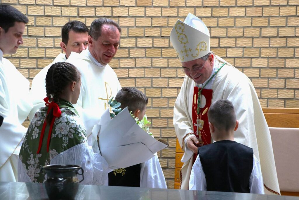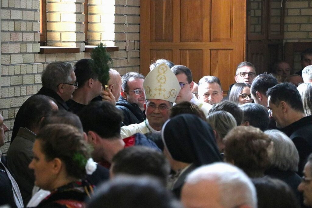 Potom je blagoslovljenom vodom poškropio zidove crkve i narod u spomen njihova krštenja te je uslijedila Služba riječi.