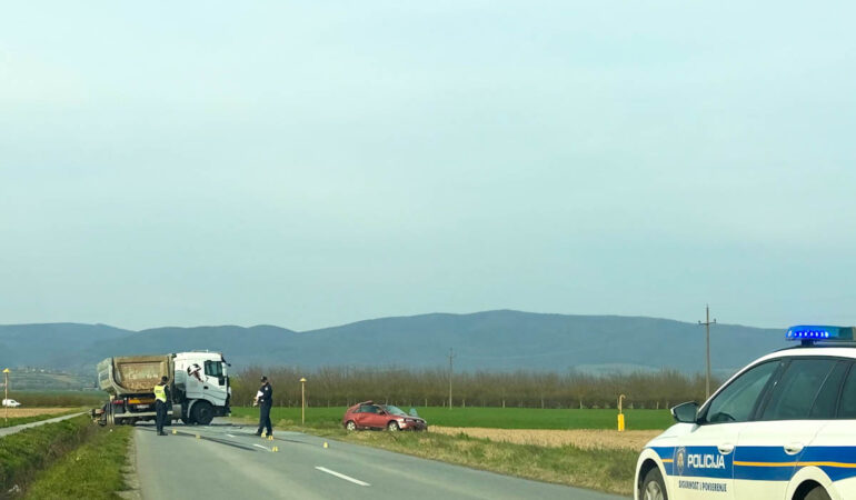 Na prometnici između Jakšića i Vetova, u blizini mjesta Ovčare došlo je do prometne nesreće između osobnog automobila i kamiona s prikolicom.