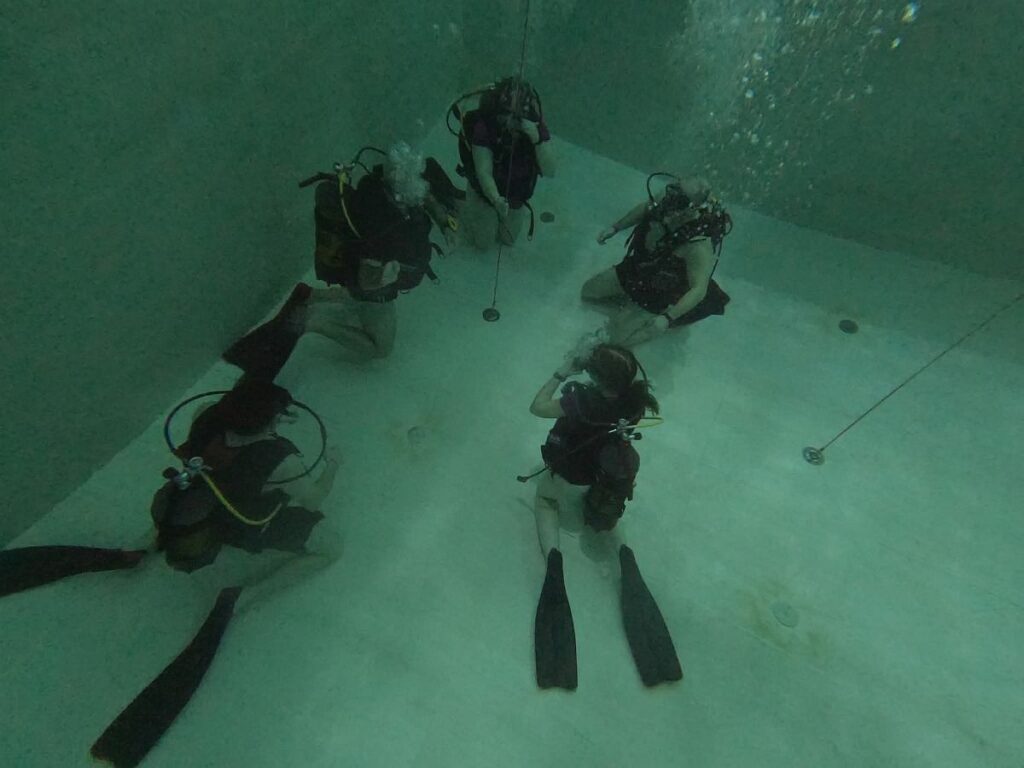 Većina je prvi put bila u ovom bazenu, a neki članovi su iskoristili zaron za polaganje ronioca R1 kategorije. Bazen nudi priliku za zaron do 42 metra, uvježbavanje i ponavljanje ronilačkih tehnika te vježbanje zarona u podvodnim špiljama. Većina je prvi put bila u ovom bazenu, a neki članovi požeškog ronilačkog kluba iskoristili su zaron za polaganje ronioca R1 kategorije.