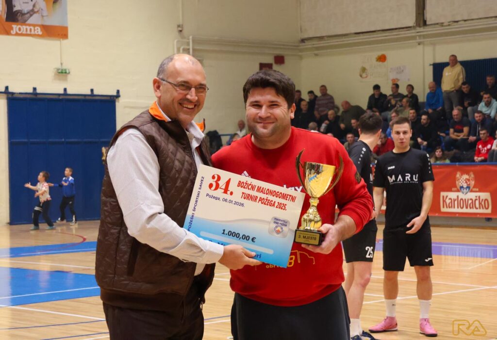 U do kraja ispunjenoj Sportskoj dvorani Tomislav Pirc, jučer tijekom 12. natjecateljskog dana odigrana je završnica u seniorskoj konkurenciji 34. Božićnog malonogometnog turnira “Požega 2025”.
