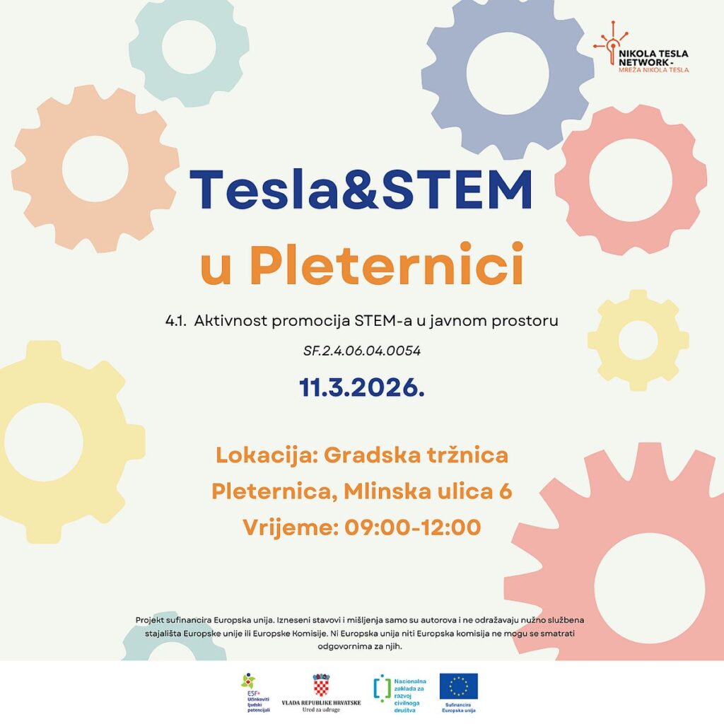 Udruga Nikola Tesla Network – Mreža Nikola Tesla organizira manifestaciju Tesla & STEM 11. ožujka 2026. godine od 9:00 do 12:00 sati na Gradskoj tržnici Pleternica.