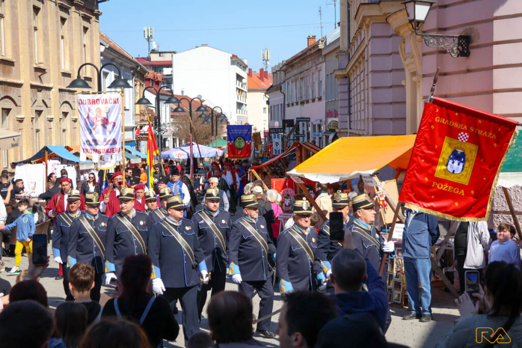 Povijesne postrojbe iz cijele Hrvatske i Bosne i Hercegovine ulicama Požege pronijele su dašak prošlosti impozantnim mimohodom, a potom su predale prijavak gradonačelniku Požege Borislavu Miličeviću i položile vijenac podno spomenika fra Luki Ibrišimoviću.