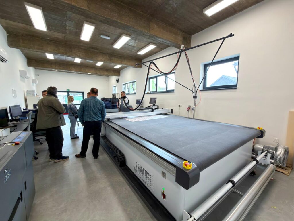 Novi objekt opremljen je za sve faze proizvodnje – od dizajna i tiska do digitalnog rezanja, pripreme i montaže. Riječ je o suvremeno uređenom prostoru koji objedinjuje proizvodni dio i izložbeni segment, omogućujući posjetiteljima uvid u cjelokupan proces nastanka proizvoda.