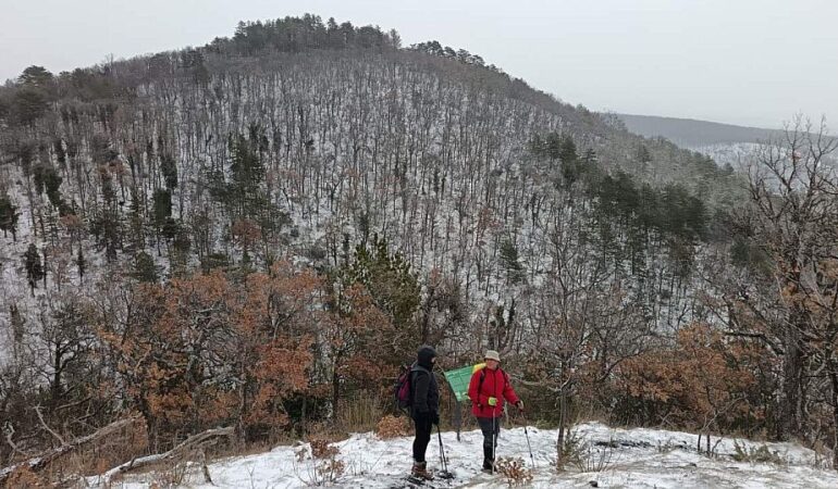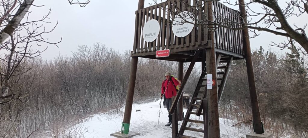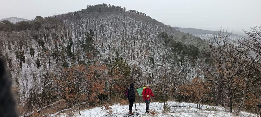 Nakon dolaska u Veliku, planinari su krenuli od crkve sv. Augustina prema Poljanicama, a zatim šumskom stazom prema južnoj terasi Papuka, poznatoj kao Zeusov tron. Snijegom prekrivena šuma, tišina i magla stvorili su gotovo filmsku atmosferu, a ekipa je unatoč zahtjevnim uvjetima napredovala u dobrom ritmu. Najveći izazov dočekao ih je kod planinarskog skloništa Mališčak na 734 metra nadmorske visine. Ondje su se planinari suočili s gotovo orkanskim vjetrom, koji je nanosio snijeg i stvarao pravi zimski ugođaj. Unatoč tome, raspoloženje nije padalo -kratki odmor, zaklon i zajednički duh bili su dovoljni da se ekipa okrijepi i nastavi dalje.