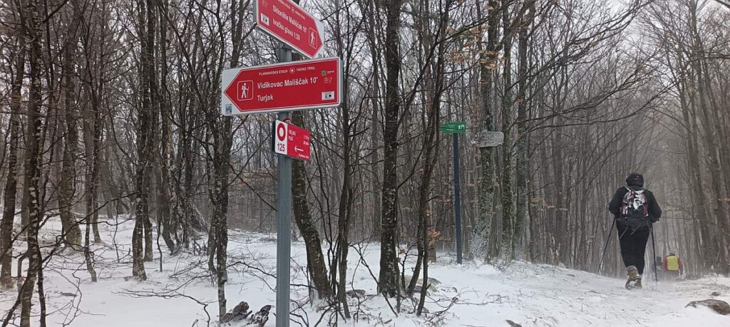 Na terasi skloništa održan je i mali pec party, koji je postao zaštitni znak ovog izleta. Nakon odmora, povratak je vodio preko vrha Mališčak (740 m) i Turjaka, čime je zaokružena ruta duga oko 14 kilometara, s ukupnim trajanjem od približno šest sati. Vodič izleta Dragan Davidović uspješno je vodio grupu kroz snijeg, hladnoću i vjetar, a sudionici su još jednom dokazali da ih ni zimski uvjeti ne mogu spriječiti u uživanju u prirodi i zajedničkom druženju.
